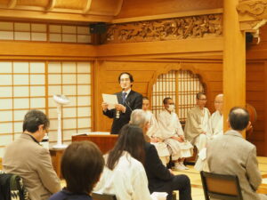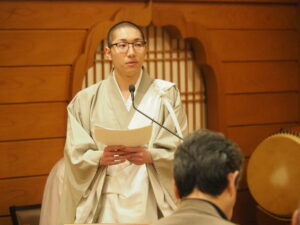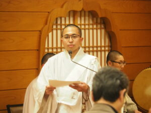 3月13日(金)18時より、御題目講が奉修されました。1時間の唱題と夕勤行の後、在勤の御僧侶より、「苦難を乗り越える」(明制さん)「煩悩即菩提」(真修さん)「塔婆供養の意義」(執事様)と題してご法話がございました。最後に、山田副講頭より挨拶がございました。